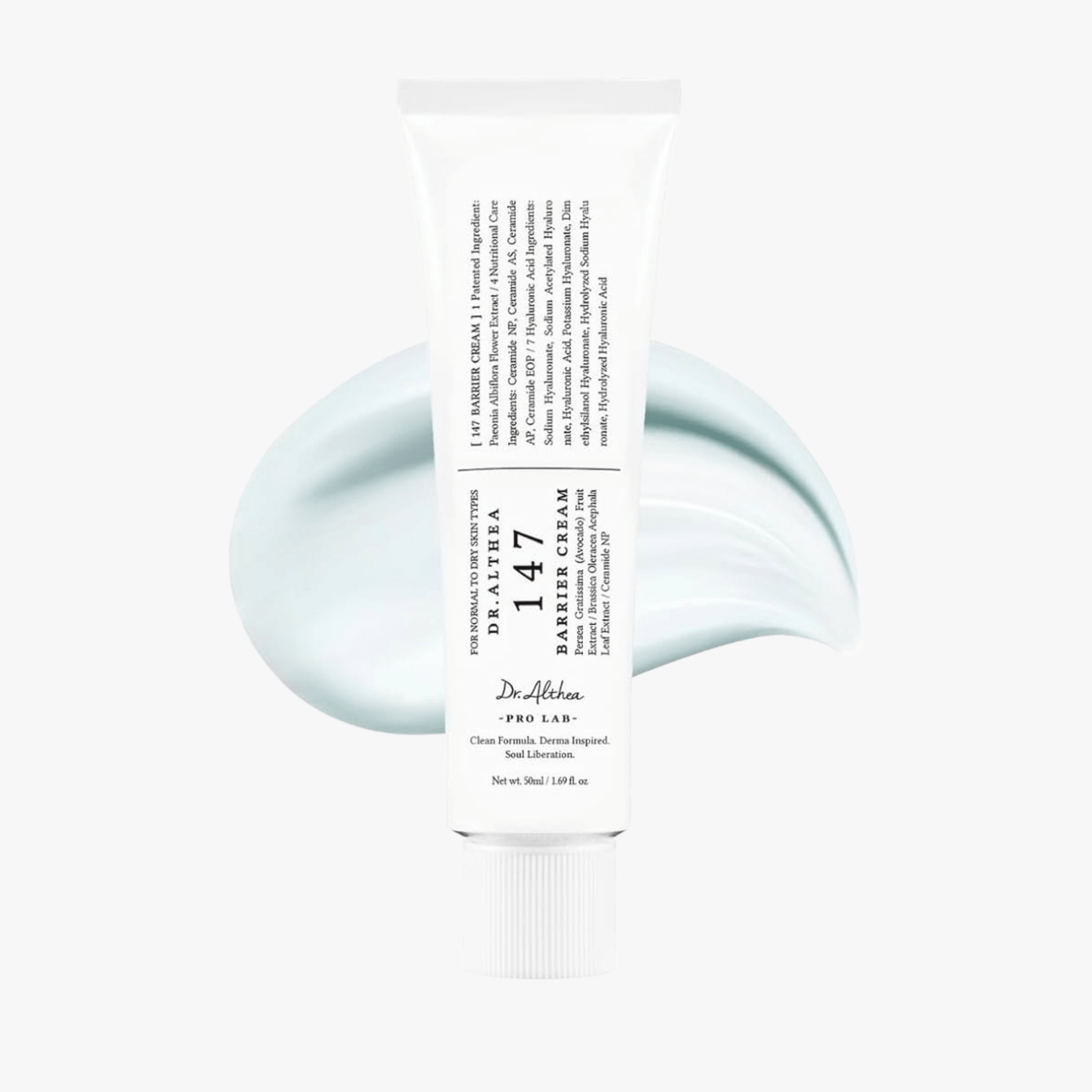 Meet the calm-restoring moisturizer for stressed skin. 147 Barrier Cream pairs guaiazulene (the chamomile-derived blue soother) with a multi-ceramide complex (NP/AS/AP/NG/NS/EOP) and a seven-layer hyaluronic acid system to drench skin with moisture while supporting a resilient barrier. The texture is rich yet silky, absorbing without a greasy film, and the formula is fragrance-free and designed for sensitive routines. Botanical helpers like centella, peony extract, and avocado round out this comfort cream.